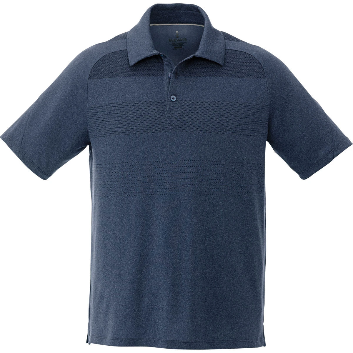 Ever wonder what it looks like when a polo combines athletic prowess with the classic look? Well, stop lighting up those search engines and asking your smart phone, because you’ve found it. The Elevate Men’s Indigo Heather Antero Short Sleeve Polo you see here is not only tough and durable-which is necessary if you want to use it outdoors and get the most out of your “polo experience,” so to speak-but it’s comfortable and sleek enough to wear in just about any situation. And that’s good news, because it means you can get more use from your custom logo when you add it to this polo for gifts, personal use, company use, and more.
