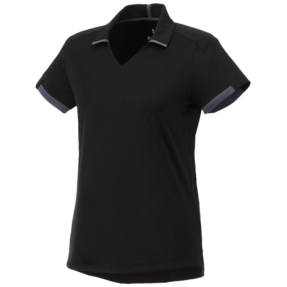Add embroidery to the Elevate Women’s Black/Grey Storm Cerrado Short Sleeve Polo for a look all your own. This polo is not just a basic run of the mill polo with styling and contrast details that make it unique. The shaped seams, tapered waist, V-neck, and dropped back hem create a silhouette that all can appreciate. Add a company logo to enjoy employee apparel that is snag resistant, moisture wicking and made to be washed and worn repeatedly while still looking good. Create your own unique logo to start building your logoed apparel line for a shop or store with this polo that is sure to be a best seller.